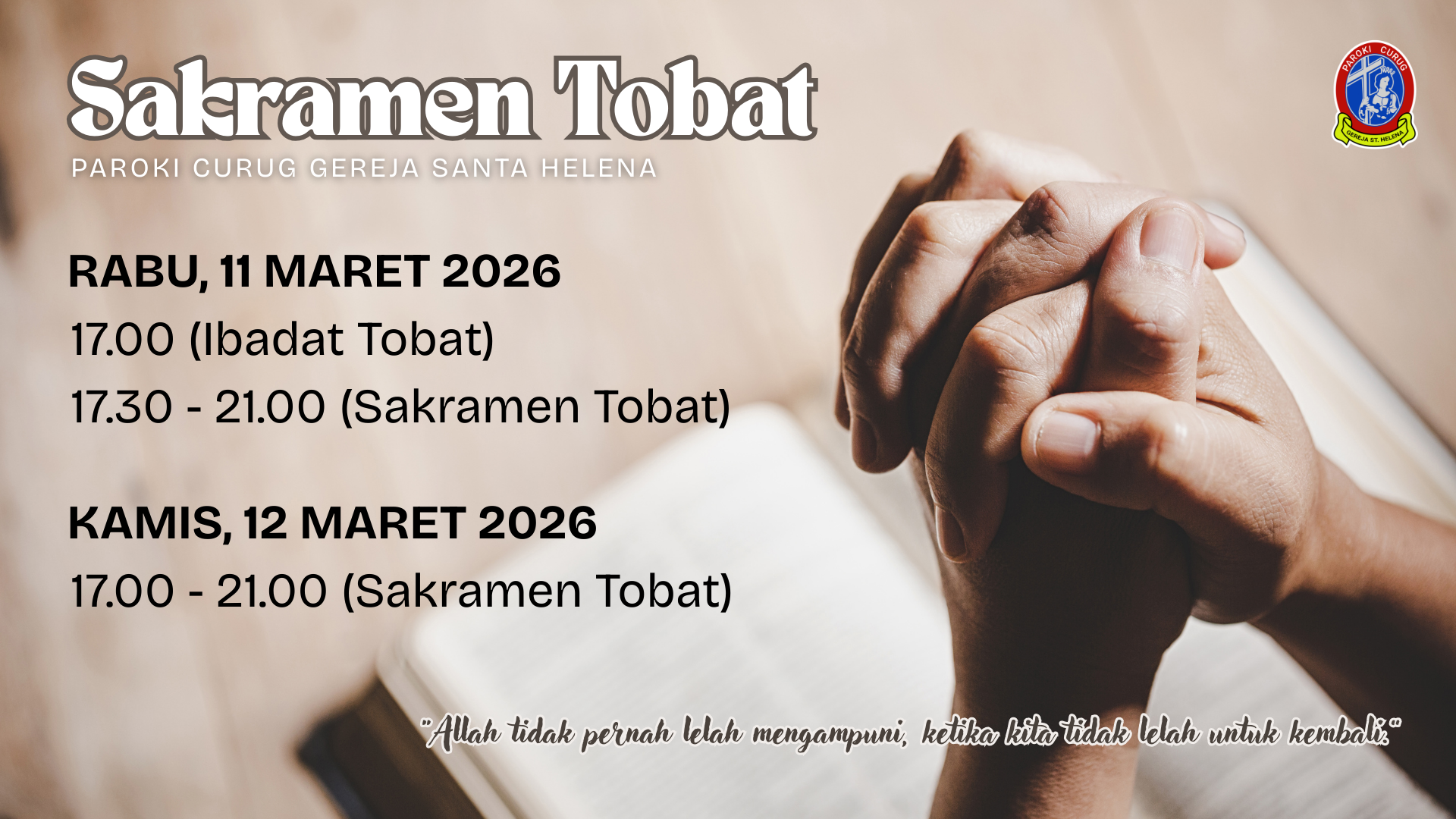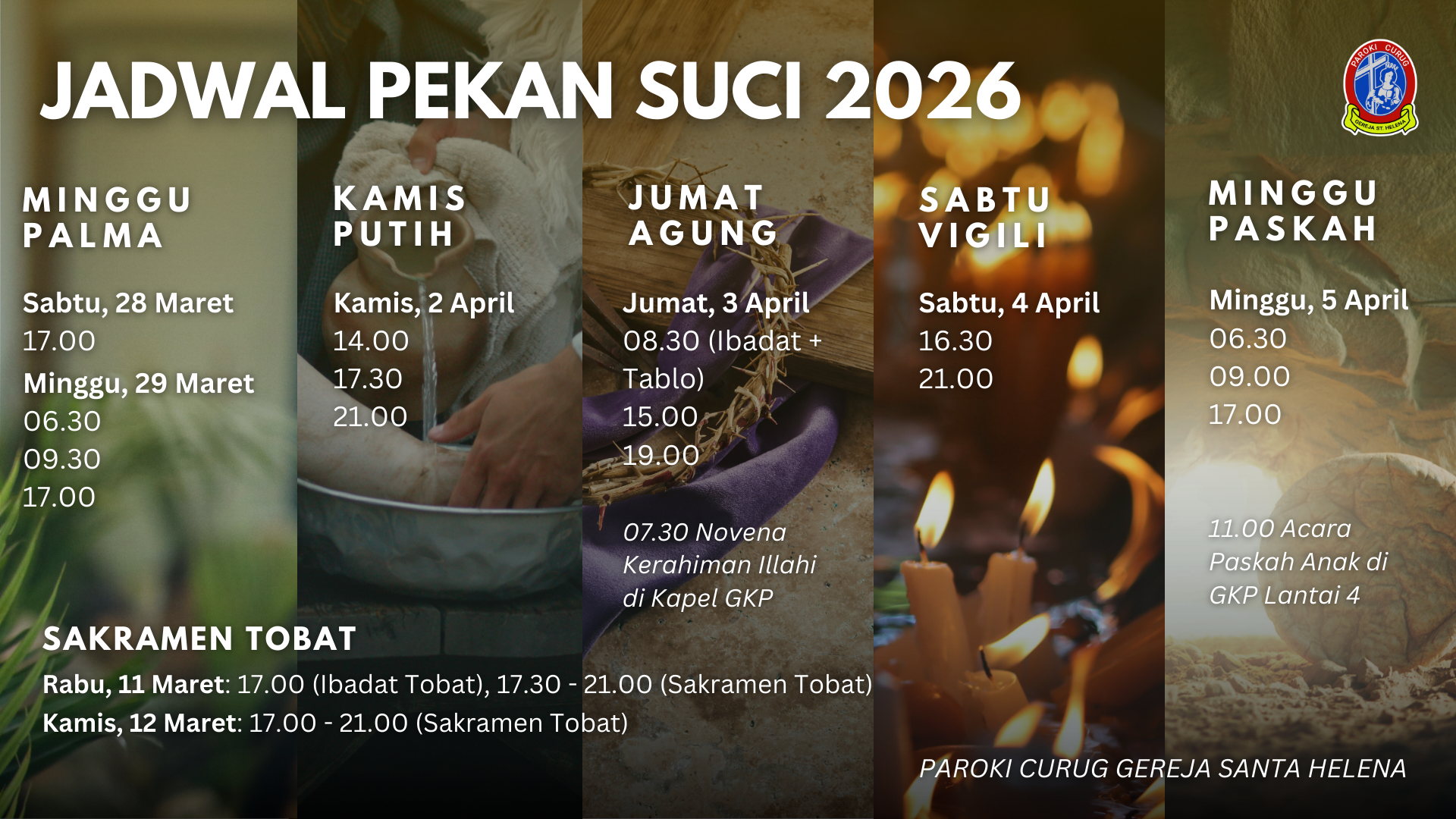 Rangkuman informasi dan kegiatan mingguan, pengumuman serta agenda terbaru Paroki Curug, Gereja St. Helena.