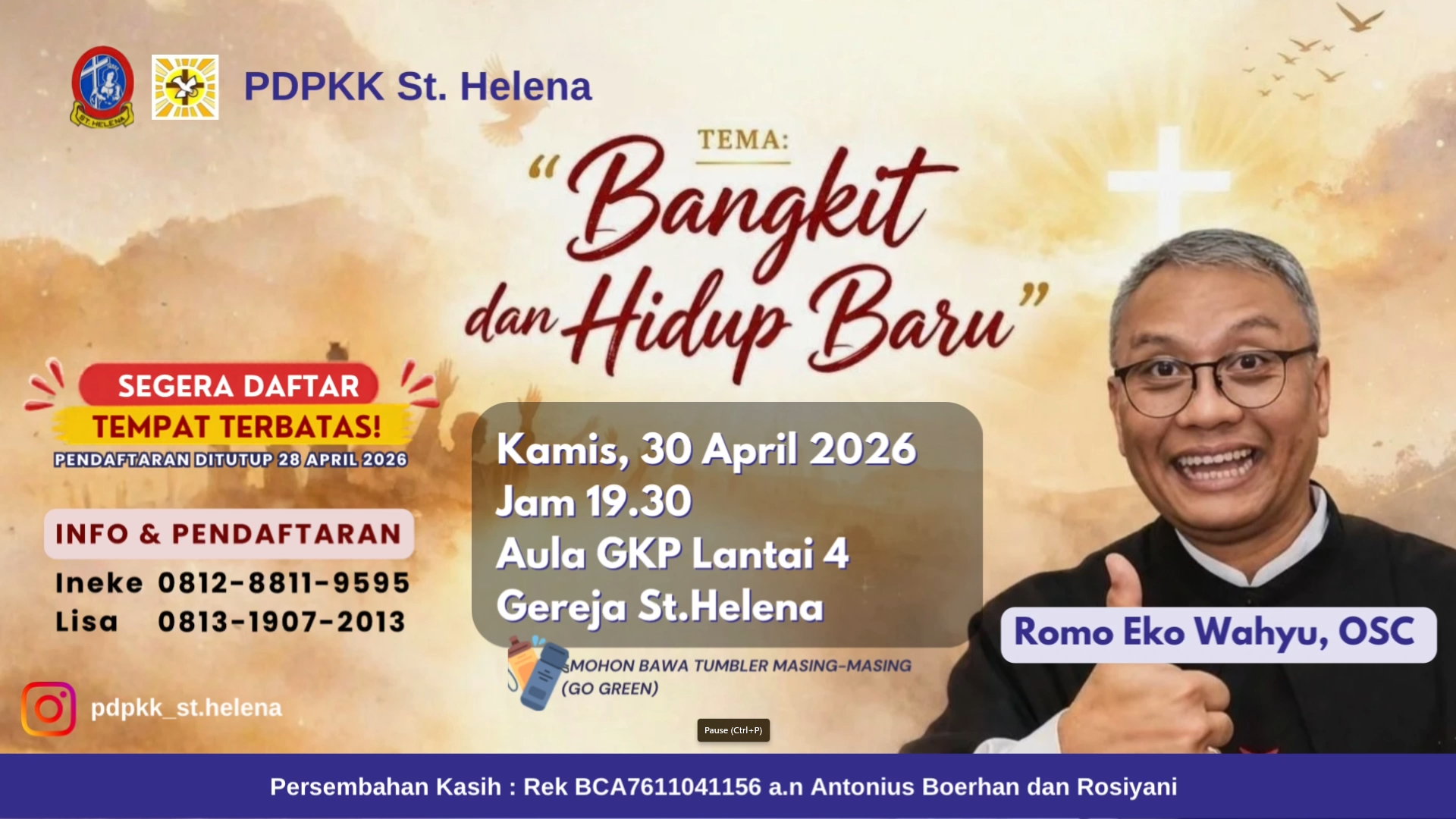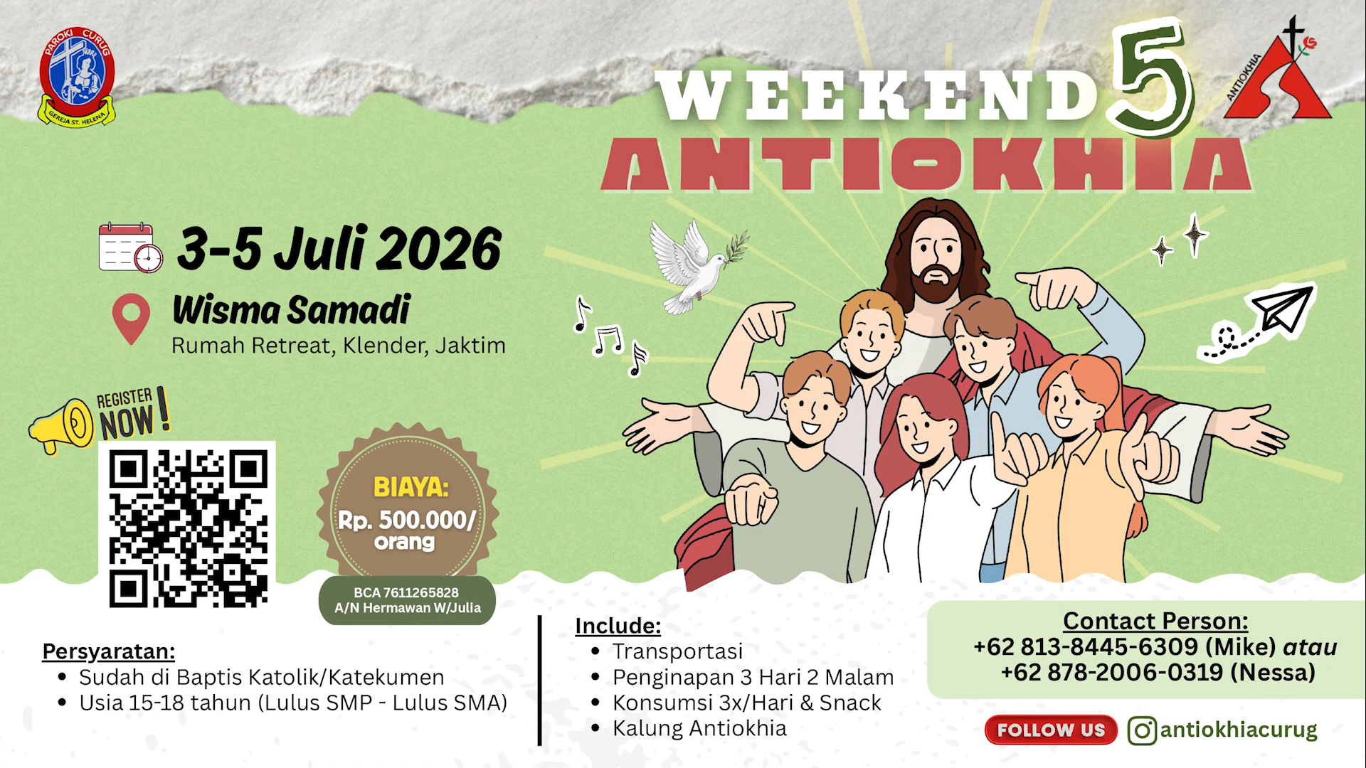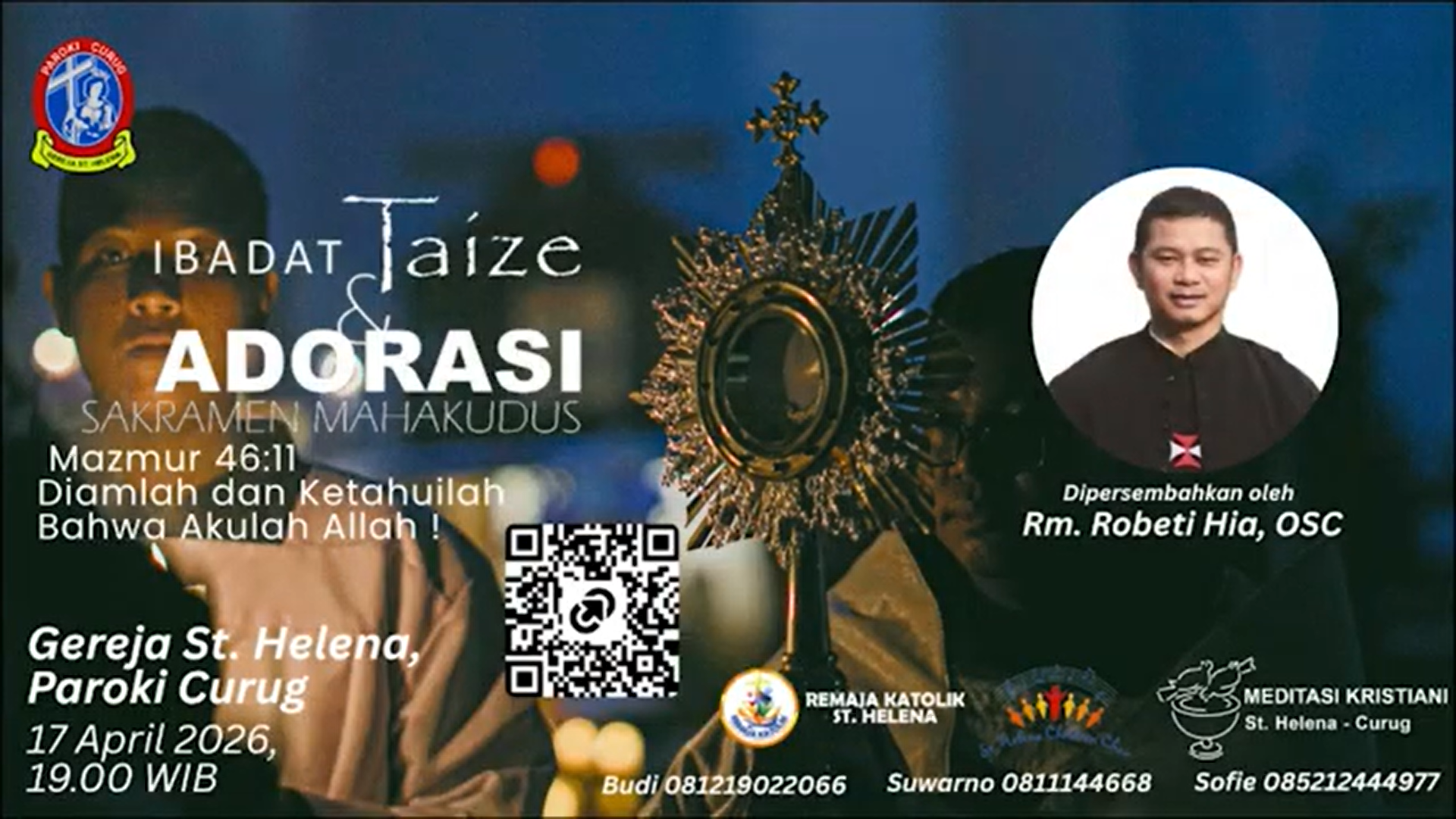 Dapatkan berbagai informasi, berita, serta kegiatan menarik seputar kehidupan umat Paroki Curug, Gereja St. Helena serta kabar terbaru mengenai acara rohani, kategorial, pelayanan sosial, serta perayaan liturgi yang sedang atau akan berlangsung melalui media dibawah ini: